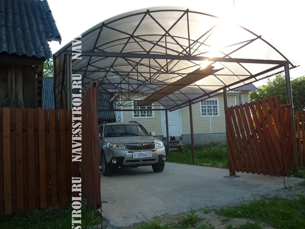 За день на даче изготовили арочный навес 5 на 7 с покрытием поликарбоната. Привезли уже готовые крашенные фермы и весь остальной материал. Все за собой убрали и увезли мусор. Молодцы!